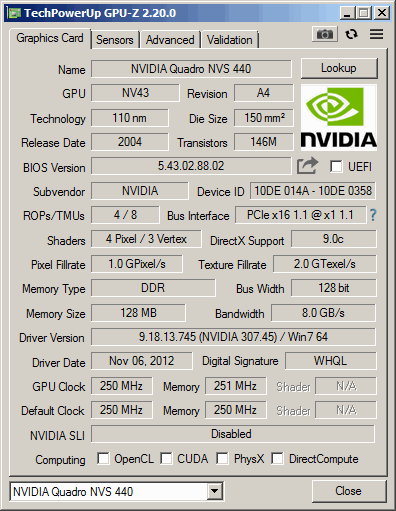 Quadro NVS 440 GPUZ