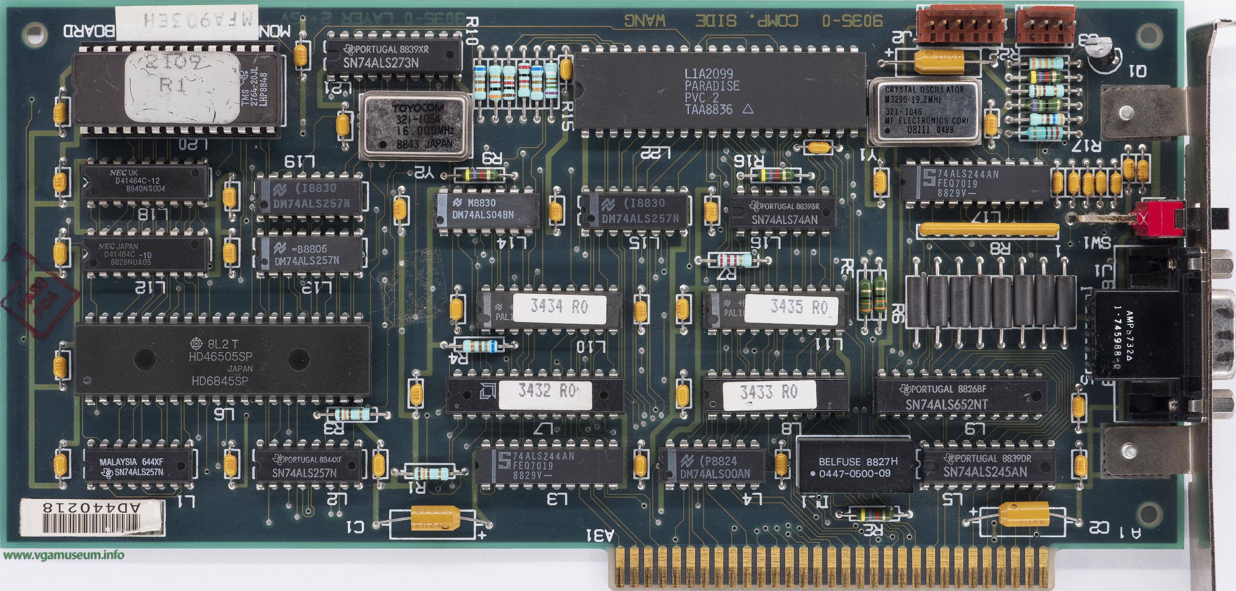 Extends capabilities of 6845 chip by expanding support to MDA/CGA/Hercules and Plantronics modes. PPC1 chip is for Parallel Port support.