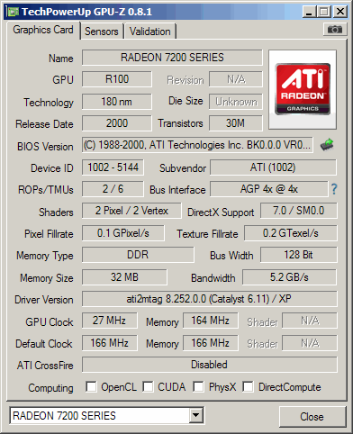1st DX7 chip from ATi and only one real rival to nVidia's Geforce 2. Later renamed to Radeon 7200.