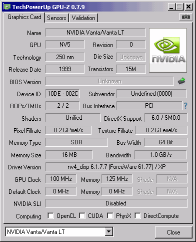 Also known as NVIDIA RIVA TNT2 M64 Vanta.